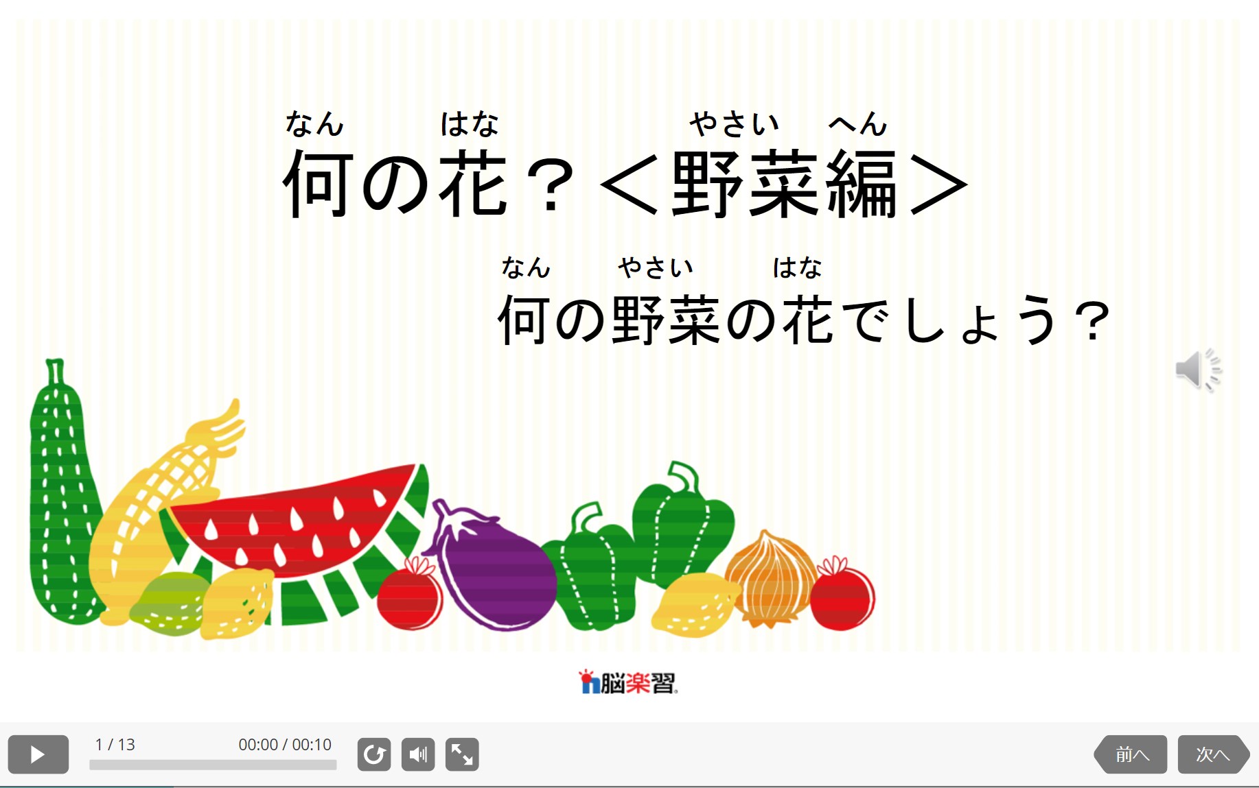 ・・・音声ボタン。ナレーション音声をもう1度聞きたい場合に押してください。